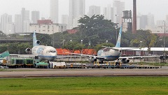 上と同じ、マナウス空港のDC-8の機体です。エンジンが落下してそのままの痛ましい姿ですが、Promodal Transportes Aéreos(-/GPT)といって2003年に設立され、2004年には倒産してしまった貨物航空会社の機体です。 |