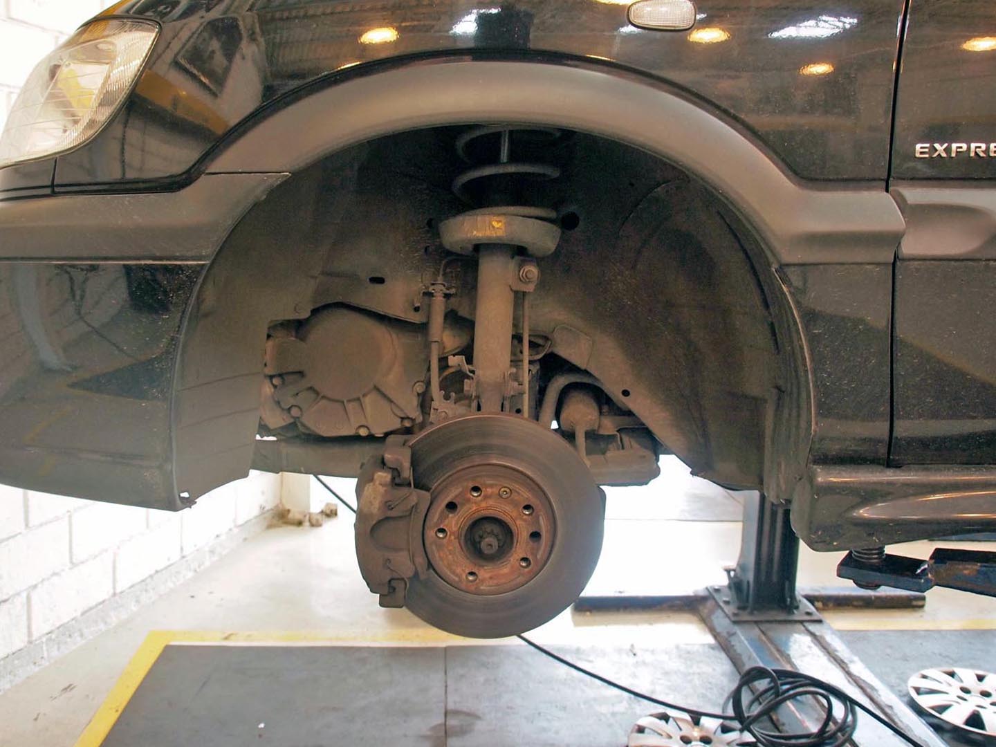 - ここで、タイヤ交換が終わるはずだったのですが、お兄さんに呼ばれ、「ダンパーがへたっていて、危ないかも。交換が必要だよ」と言われてしまいました。車両の実物を見ると確かに心配です。本当に交換時期に来ていると感じ、ダンバーの交換も頼みました。