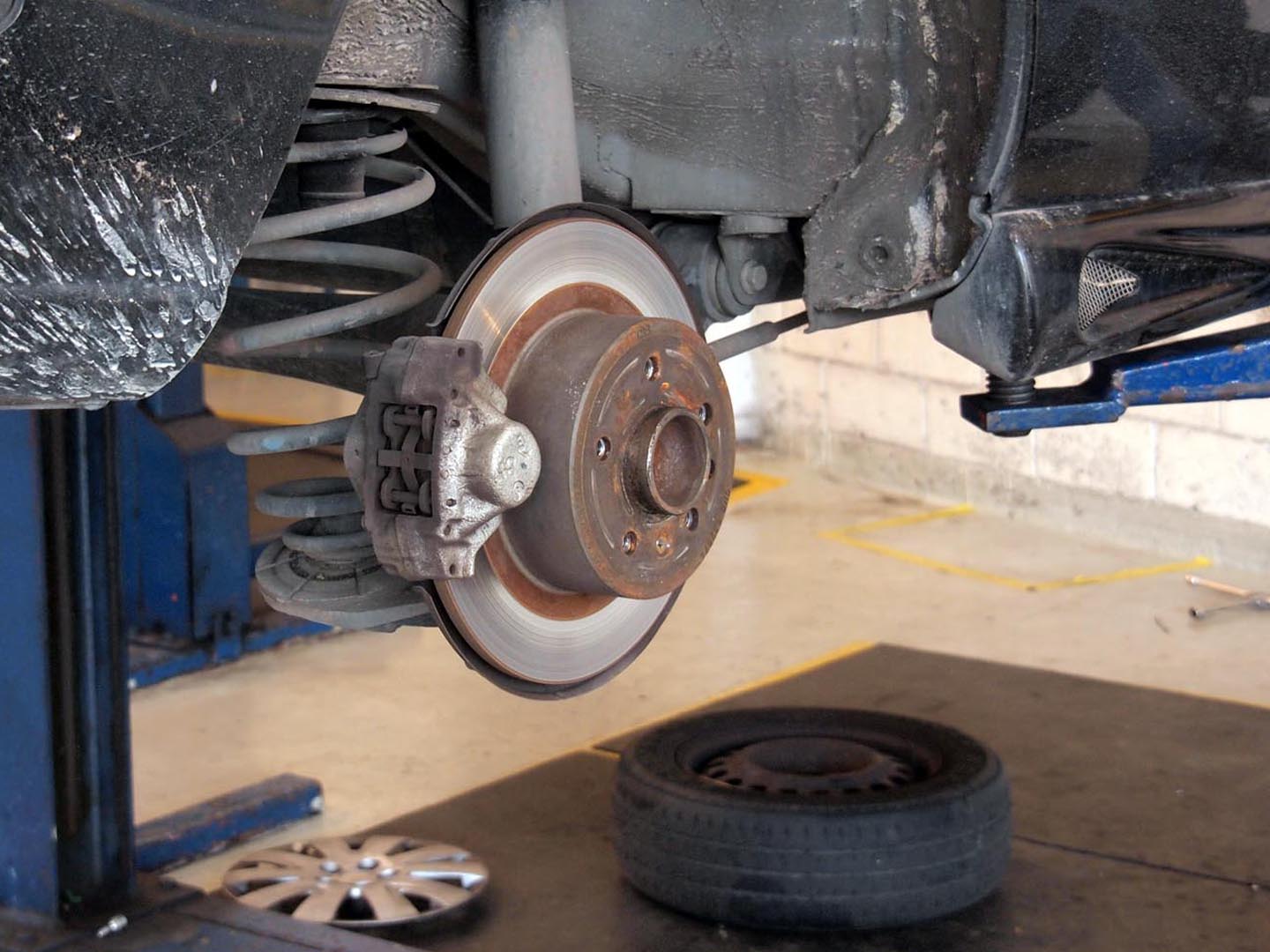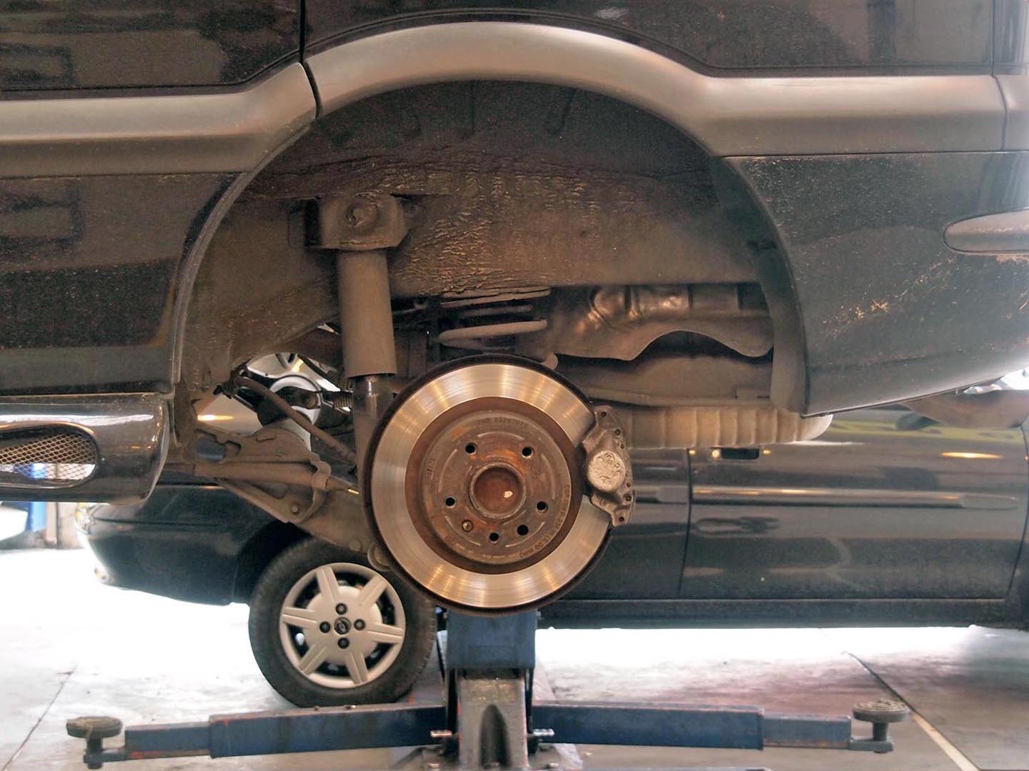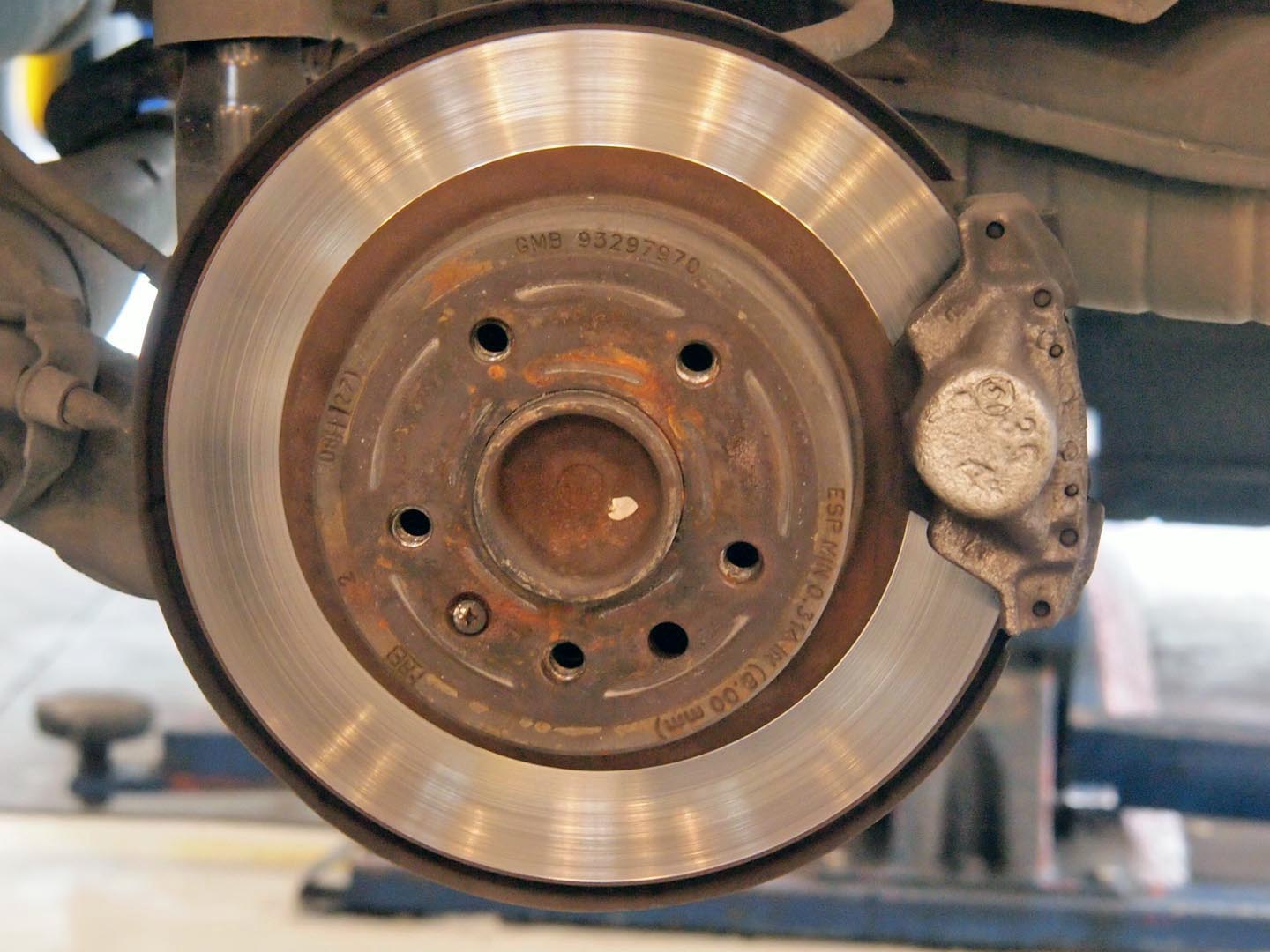 リアのディスクの様子が分かります。ちなみにこのハブ形状、タイヤをボルトでとめるヨーロッパタイプ。シボレーっていうアメリカメーカー名なのに、GMというか、オペルの影響が強いのかな?。-