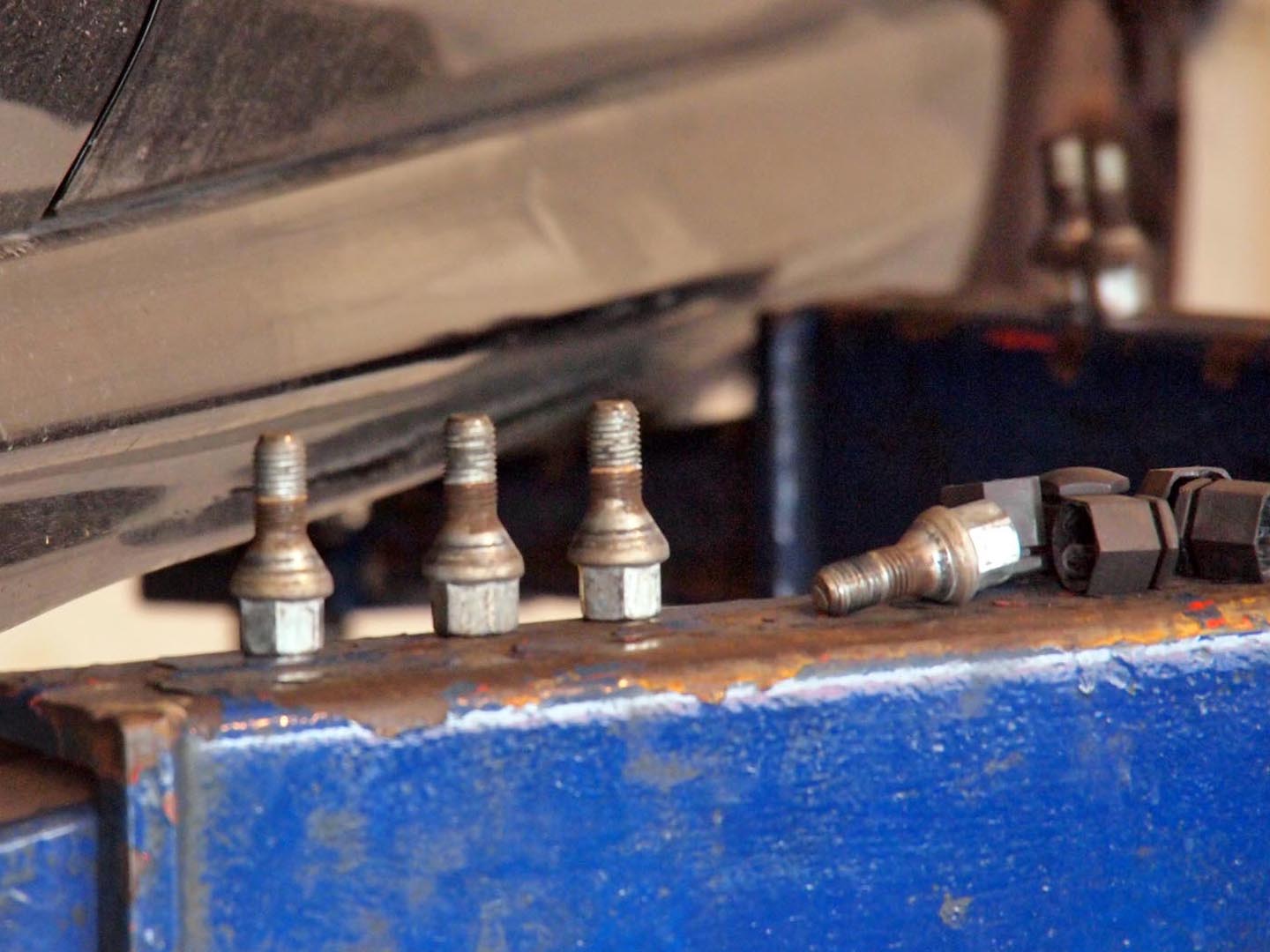 これらのボルトがタイヤをとめているボルトです。ヨーロッパ車仕様ですね。-