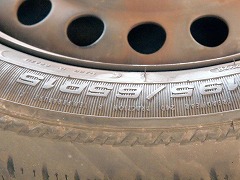 外した旧タイヤ。恥ずかしながら、スチールホイルのまま過ごしました。ホイールキャップがそこそこ形が良かったので、余計な出費は控えていました。