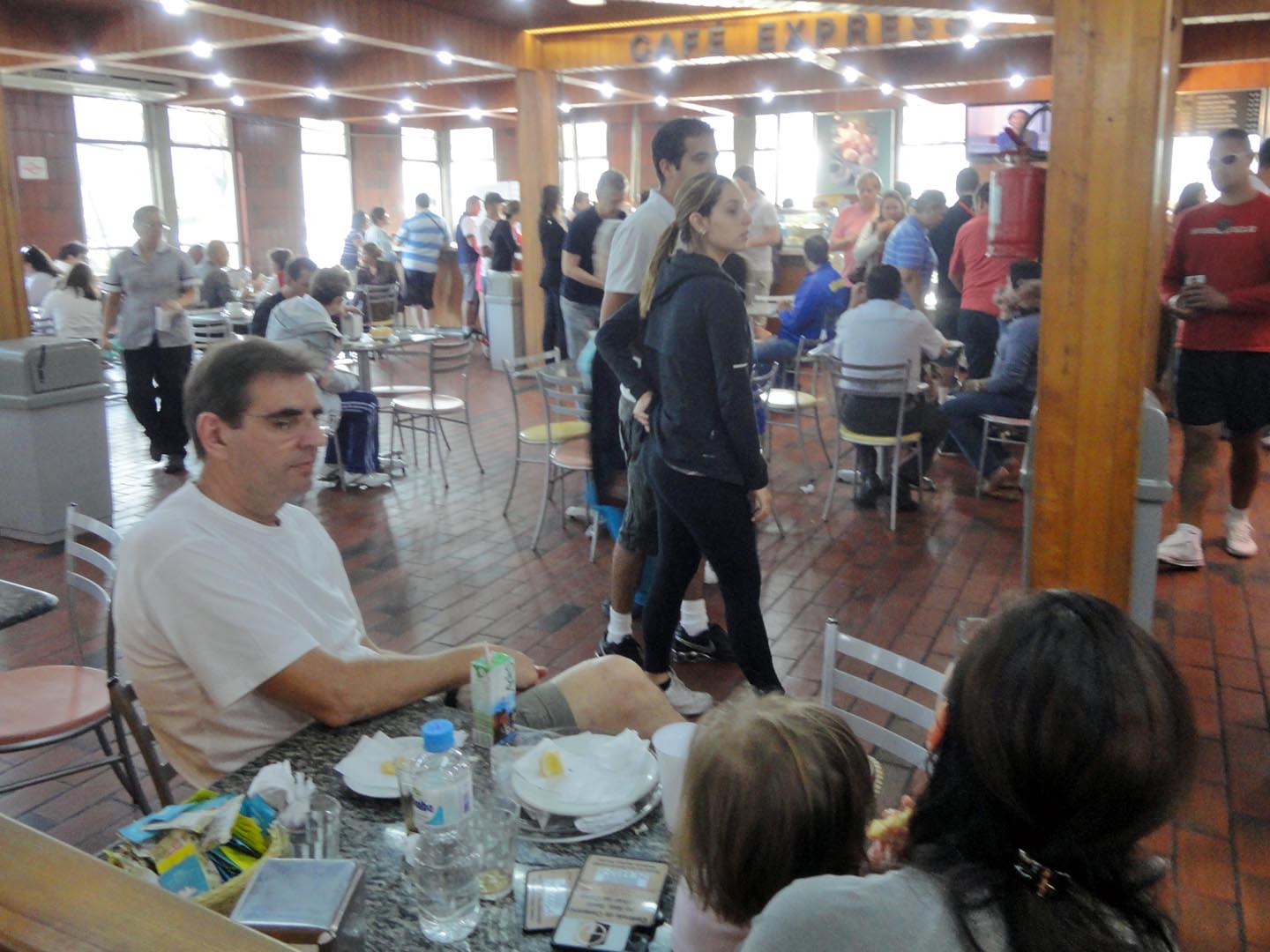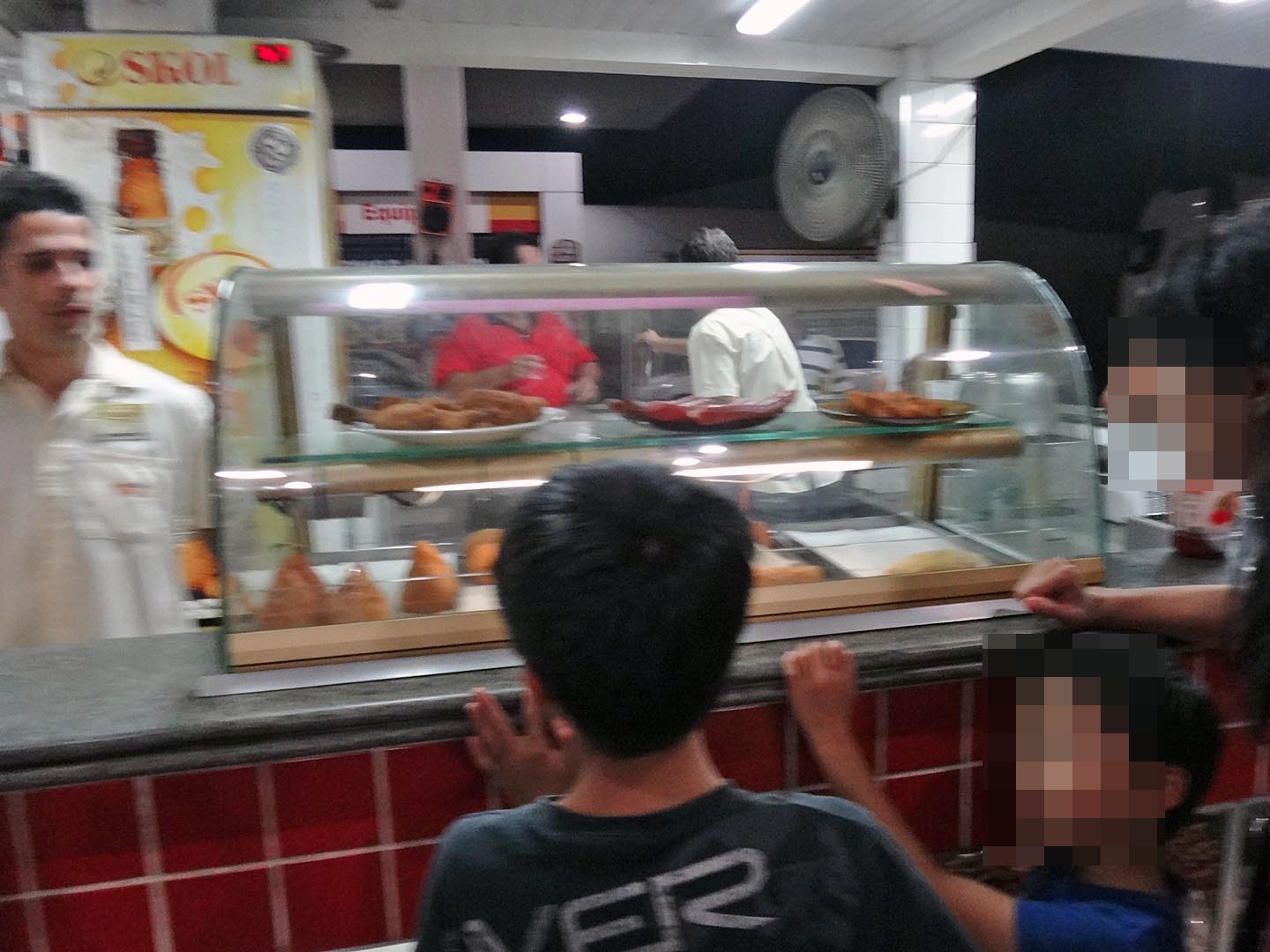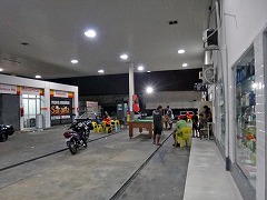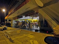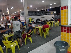 - 途中で、夕食(夜食)をとりました。なかなか良い店がなくて、しばらく走りました。ようやく暗ーい怪しげなガソリンスタンドが出てきましたので恐る恐るそこへ。でも中は普通のお店でした。みんな陽気にビールを飲んでいます。ちなみにみんなトラックの運転手らしい。ブラジルでこの程度は飲酒と言わないのかな???