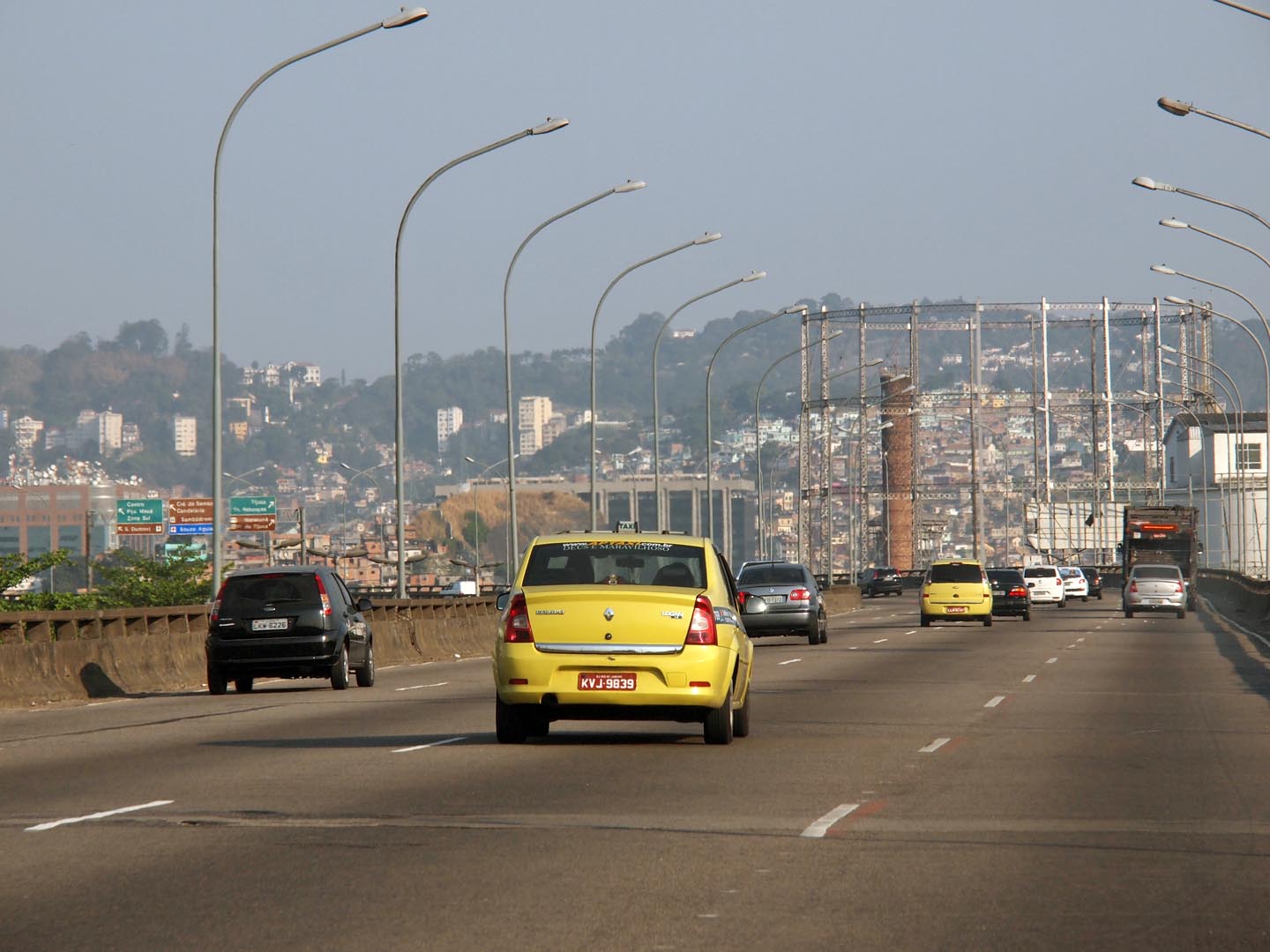 リオ市内の交通規制。バスが車線の真ん中を通り、それ以外は外側の車線を走る場所があります。