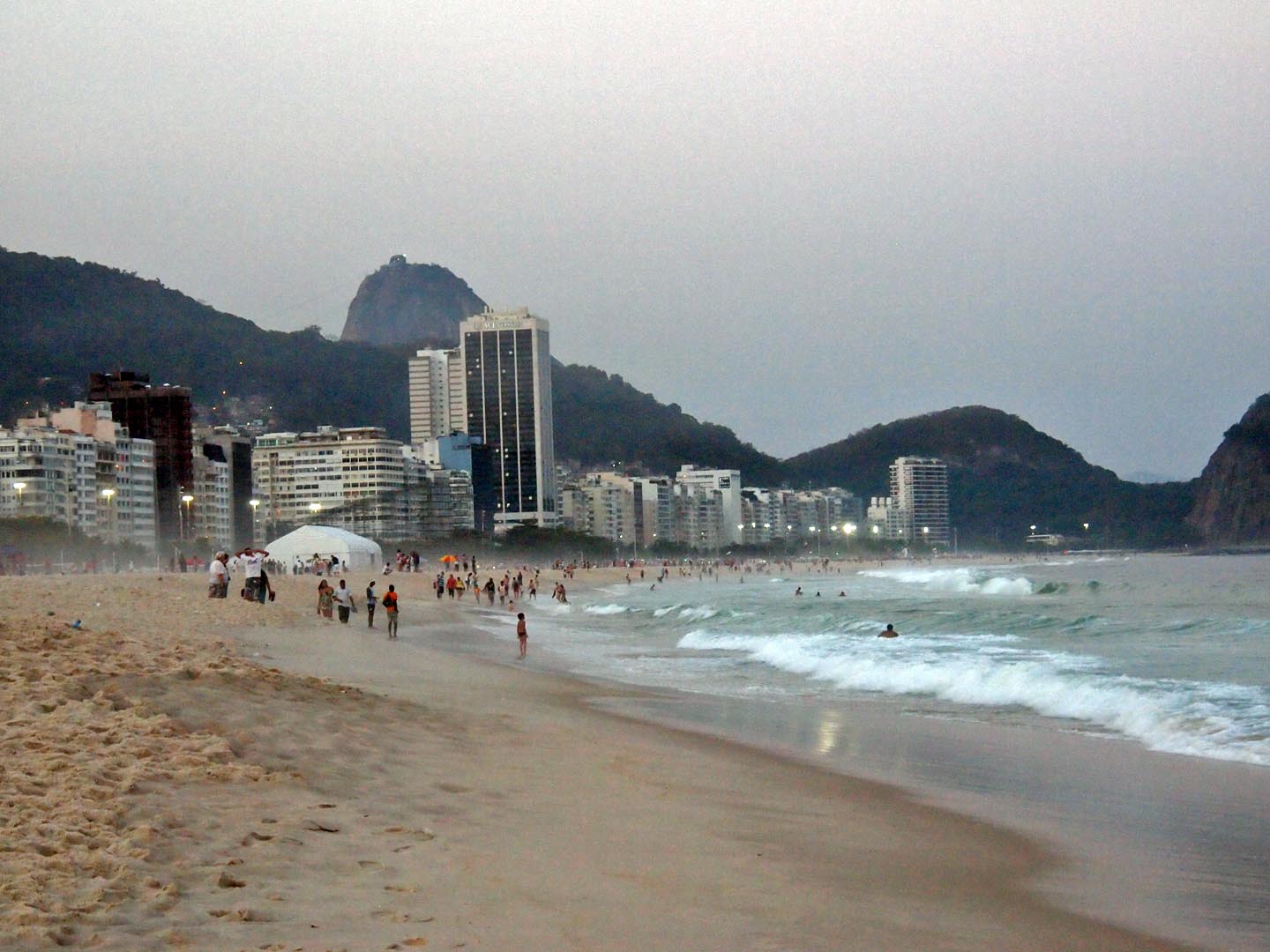 夕暮れ時のイパネマ海岸の様子。ちなみに強盗に遭う確率が超高い時間帯・場所ですので、絶対に行ってはいけない、と言われています。