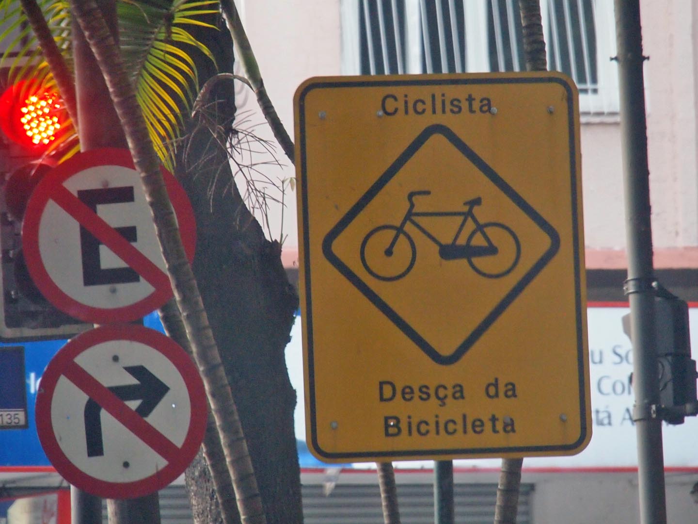 「自転車はここで降りて」日本でいう二段階右折、に近い看板。