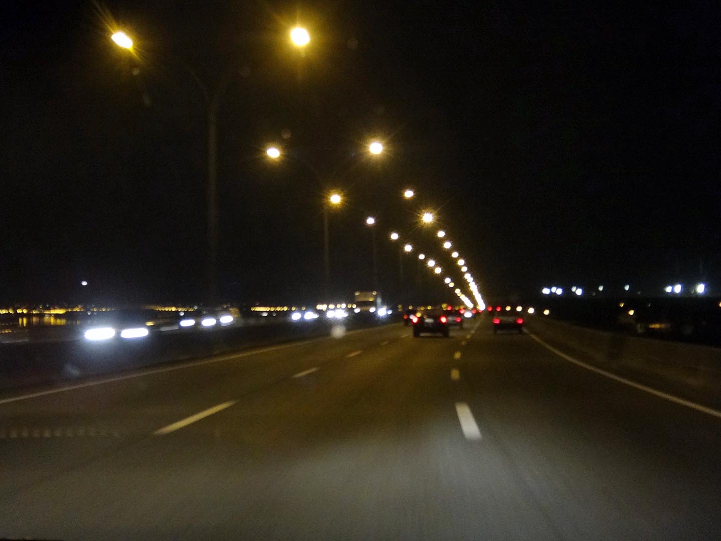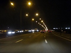 この道は湾岸の高架を走っています。左折すると中心部や空港に行けます。-