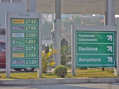 Disel Comun 50+ レギュラー軽油 50+ - さすが、サンパウロ-リオ間という主要幹線なので、いろいろな燃料を置いているようです。ちなみに上から3つめの Gasolina pedium は、フェラーリなど用のようです。サンパウロのお金持ちは限りなく金持ちですので、フェラーリやランボを見る機会も多いので、専用のガソリンが必要、ということでしょうか。