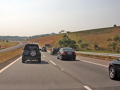 最高速度は、軽い車(普通車)は100km/h、重い車(トラック)は90km/h。ですがもっともっと速くみんな走っています。ただし、レーダー付きのカメラが随所にありますので、その周辺になるとみんな急にゆっくりになります。-