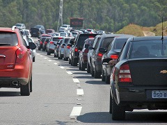料金所。支払いのためにやっぱり渋滞します。ETCのような仕組みもありますが、カードをクレジット決済する申し込みをする必要や、車に装置をつける必要もあり、着けませんでした。-