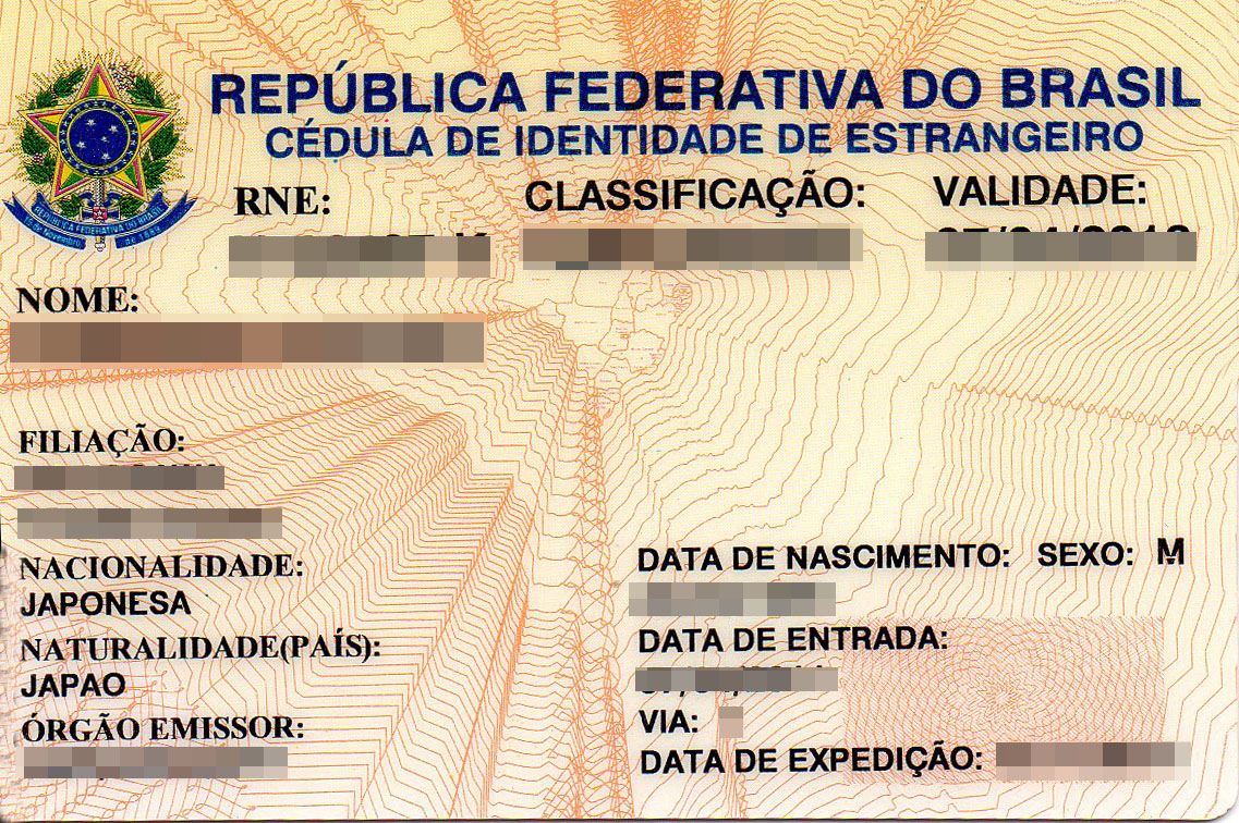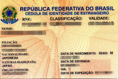 - そもそも、ブラジルと言う国は、日本人が観光で訪れようとしても、未だに厳格なビザを要求する国です。ましてや居住するとなると、それはそれでめんどくさい手続きが必要になります。仮にビザが取得できて入国できたとしても、今度は、入国から30日以内に最寄りの連邦警察Policia Federalへ行き、外国人登録をしなけばなりません。そこで在留ビザとは別に、外国人登録証を取得しないと、逮捕される、といことです。写真は、困難の末に取得したRNE :Registro Nacional de Estrangeirosが明記されている、Cedula de identedade de estrangeiro。これは顔写真が印刷されているプラスチックカードになっているのですが、これを得るまでに半年!かかります。さすがに半年もかかれば日常生活に支障がでるので、しばらくの間、単なる紙にシールをはっただけの仮認定証(プロトコール)で生活します。