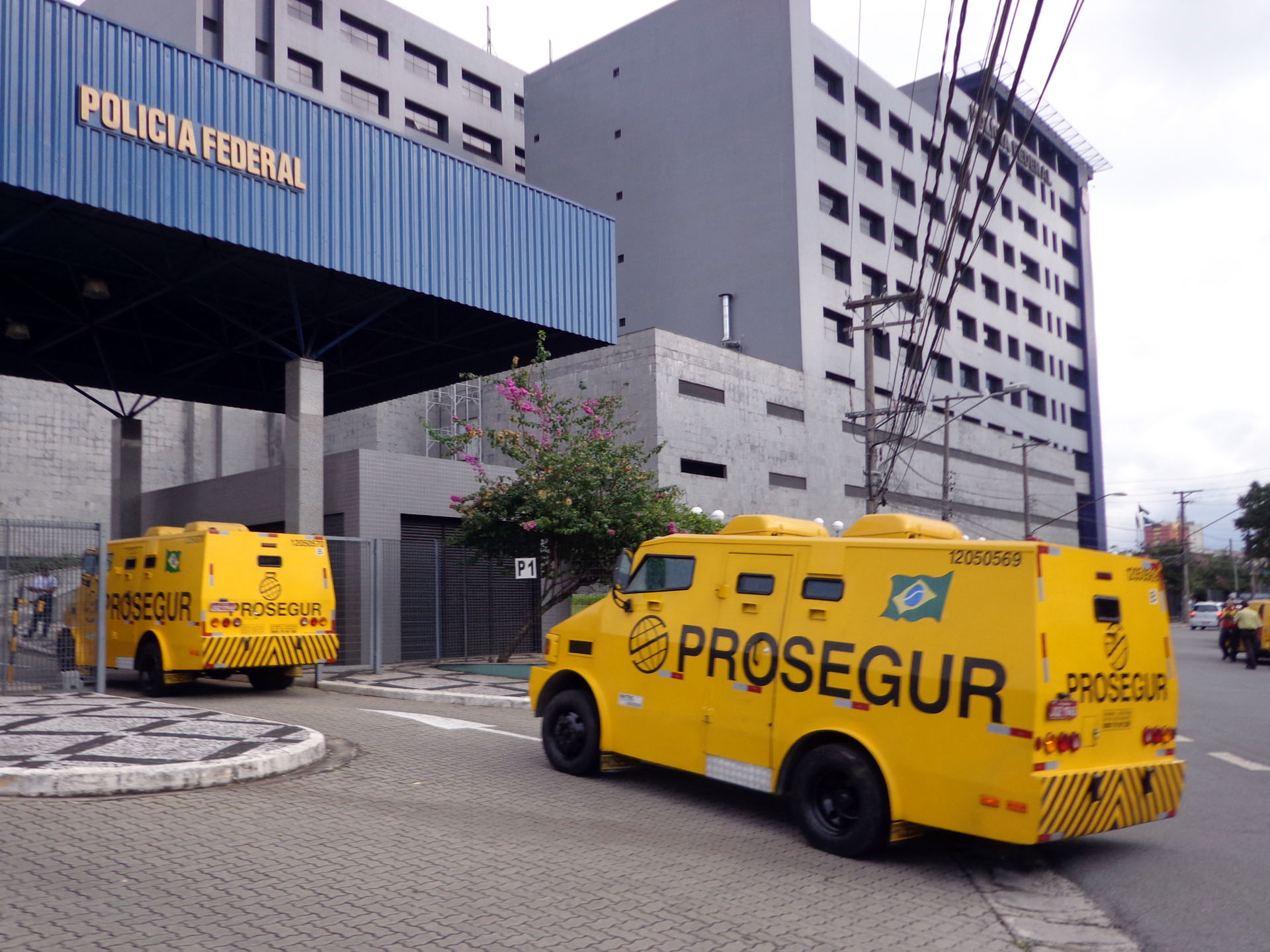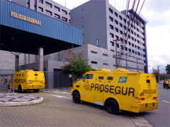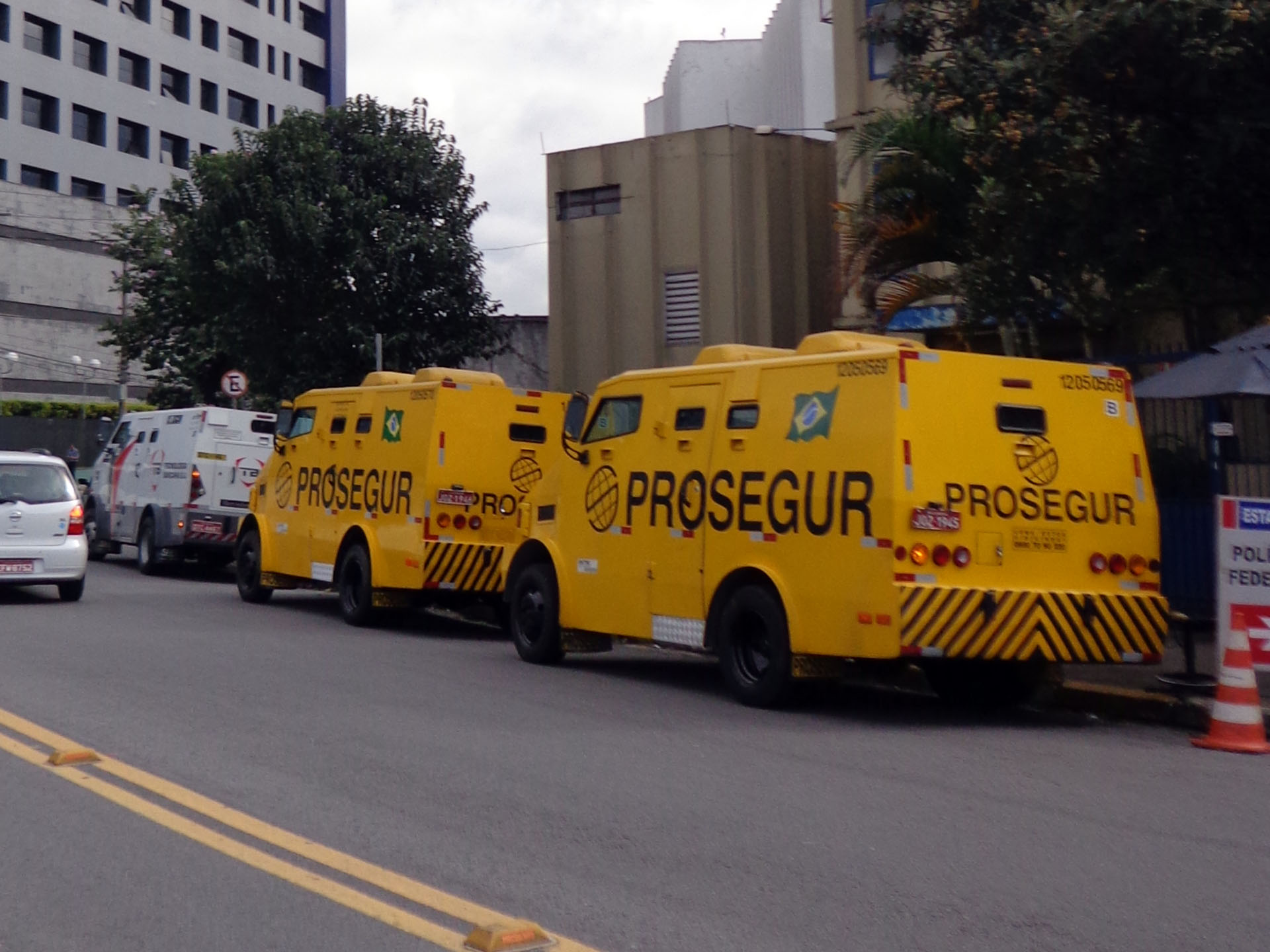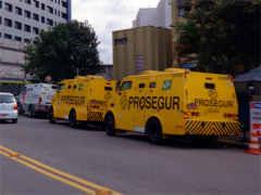 - おまけ。連邦警察に行くと、いつも近くに装甲車風の現金輸送車が停まっています。治安は超最悪のブラジルですので、現金輸送車は完全武装のこんな車を使っています。この車に現金を運ぶ人達も常に3~4人組で、街中でもライフルの銃口を周囲にしっかりと向けながら!、サササっと行動しています。