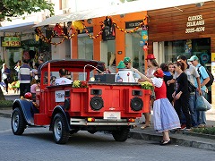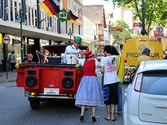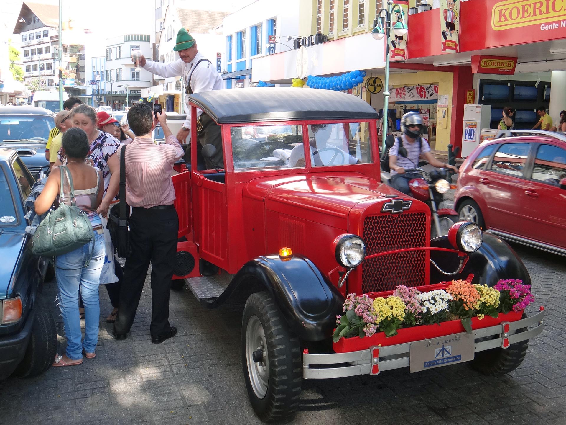 - 古いシボレーのトラックです。ナンバーには、「ブルメナウドイツ村」とだけ。おそらく村のイベント用トラックを公道にそのまま持ってきてしまったのでしょうが、文句をいう人は誰もいません。