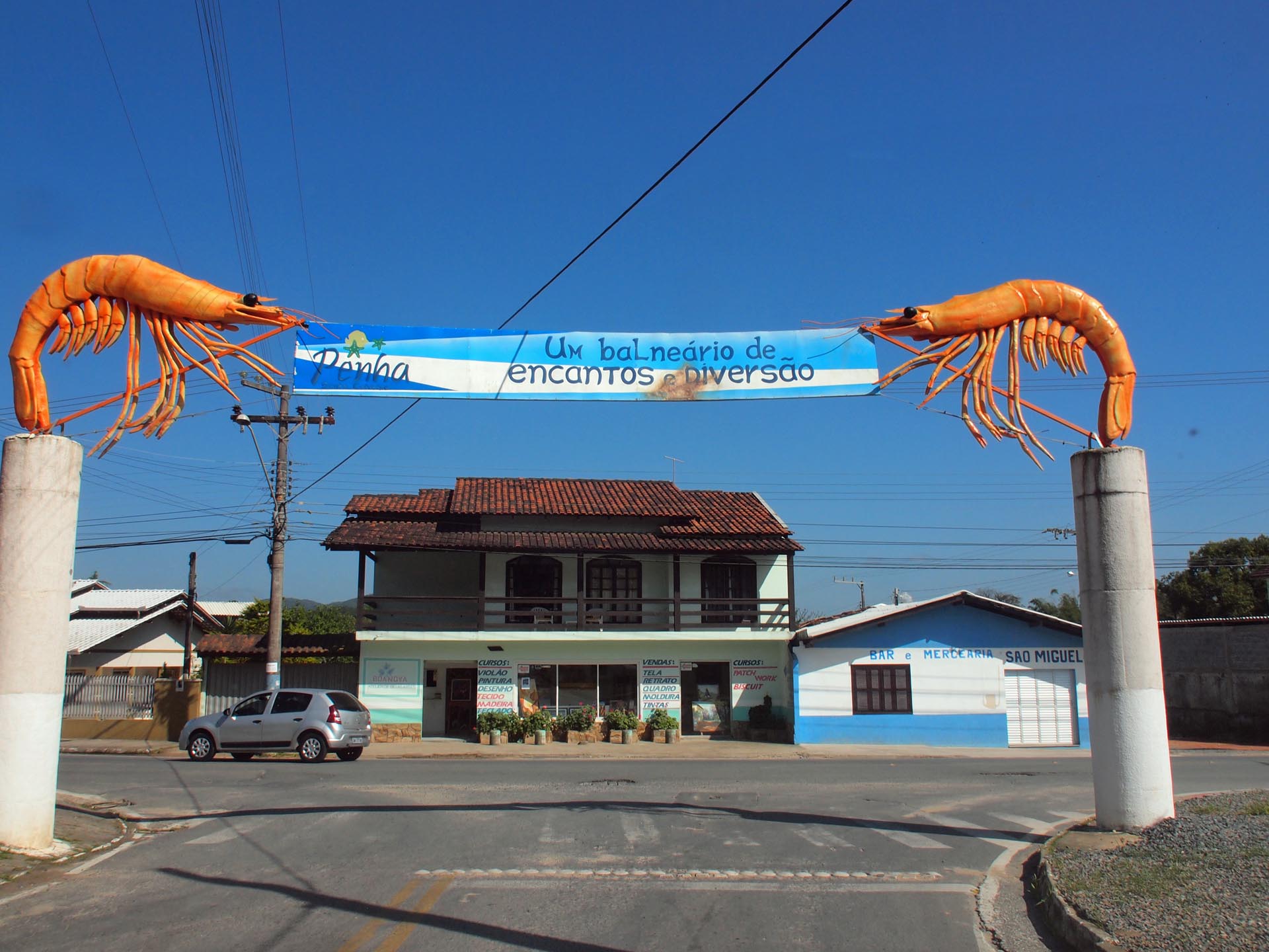 - 宿を出たところにエビのオブジェ付きの大きな看板がありました。そっか、近くに温泉もあるのかな?そもそもこの町はPenha(ペーニャ)っていうんだ・・・。