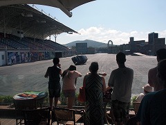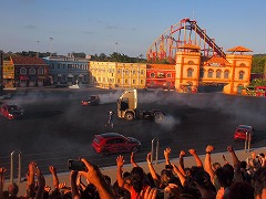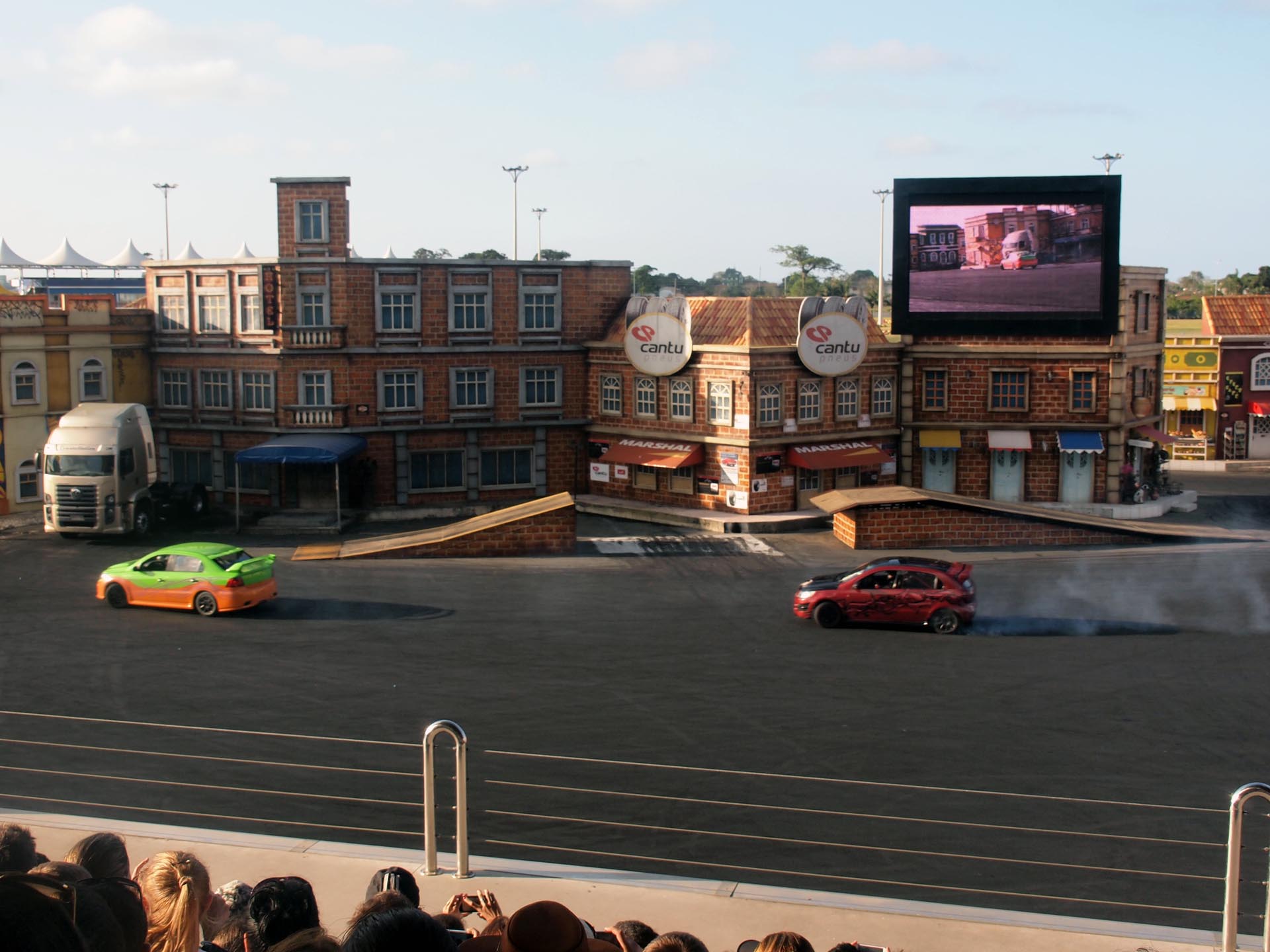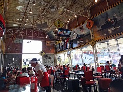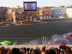 - レストランの向こうはどうやらカースタント会場でした。「せっかくなら車のショーを見よう」ということで、開演時間までゆっくり食事をとりました。