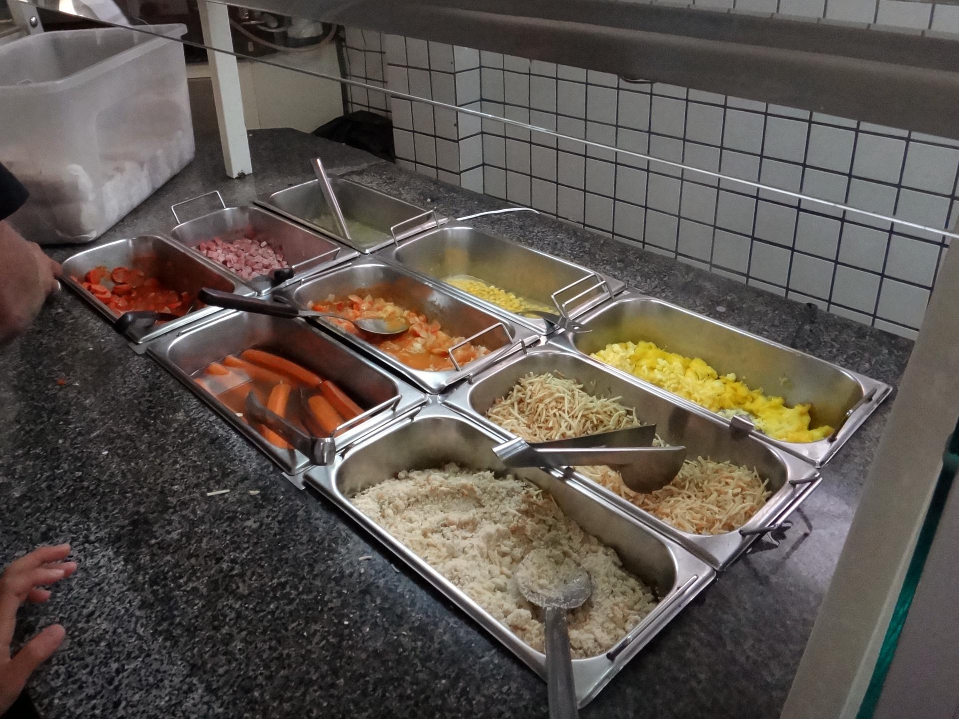 - 肉や野菜など好きなものを好きなだけとるスタイルです。