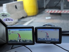 - ある日の週末。3連休が取れましたので、ドイツ人の街まで行くことにしました。写真は、手元にポータブルナビが2つありましたので、近距離と長距離の地図を出しながら表示させて遊んでいる様子です。