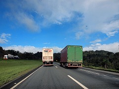 - 今回、片道600km以上もありますが、道自体はかなり簡単。まずサンパウロから、BR-116という連邦高速(rodovia longitudinal brasileira)で、南隣のパラナ州に向かいます。このBR-116は、ブラジルで2番目に長い道路で総延長は4490kmもあるそうな。もともとは国営で作ったのですが、今は経営権を売却し区間ごとに経営業者が違う、というなんとも不思議な状態です。
