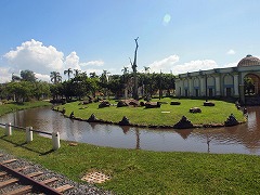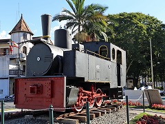 - 市役所前にはかわいいSLが鎮座していました。日本よりもはるかにヨーロッパに近い文化を持つブラジルは、鉄道の普及も日本以上でした。しかしその後の政策転換により衰退も早く、旅客営業はほぼゼロに。今では過去の遺産として時折こんな展示があるのみです。
