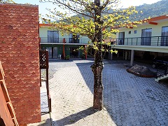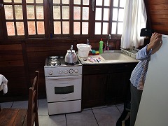 一般論として、海外駐在日本人家庭の方は、比較的良いホテルに泊まられる方が多いのですが、金銭的余裕がなく、貧乏旅に慣れている我が家は「きちんとした高いホテルよりも何か面白そうな所」「宿のおばちゃんと世間話ができそうな所」に泊まることが多いです。今回の宿も、そんな感じで「静かな海の真ん前」「ちょっと面白そうな山小屋風コテージ」という宿に宿泊しました。
