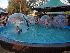 - 出口付近には丸い大きなボールに入ってプールを歩く?アトラクションがありました。