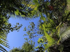 - 上を見上げると、青い空に亜熱帯の植物。確かに別世界です。