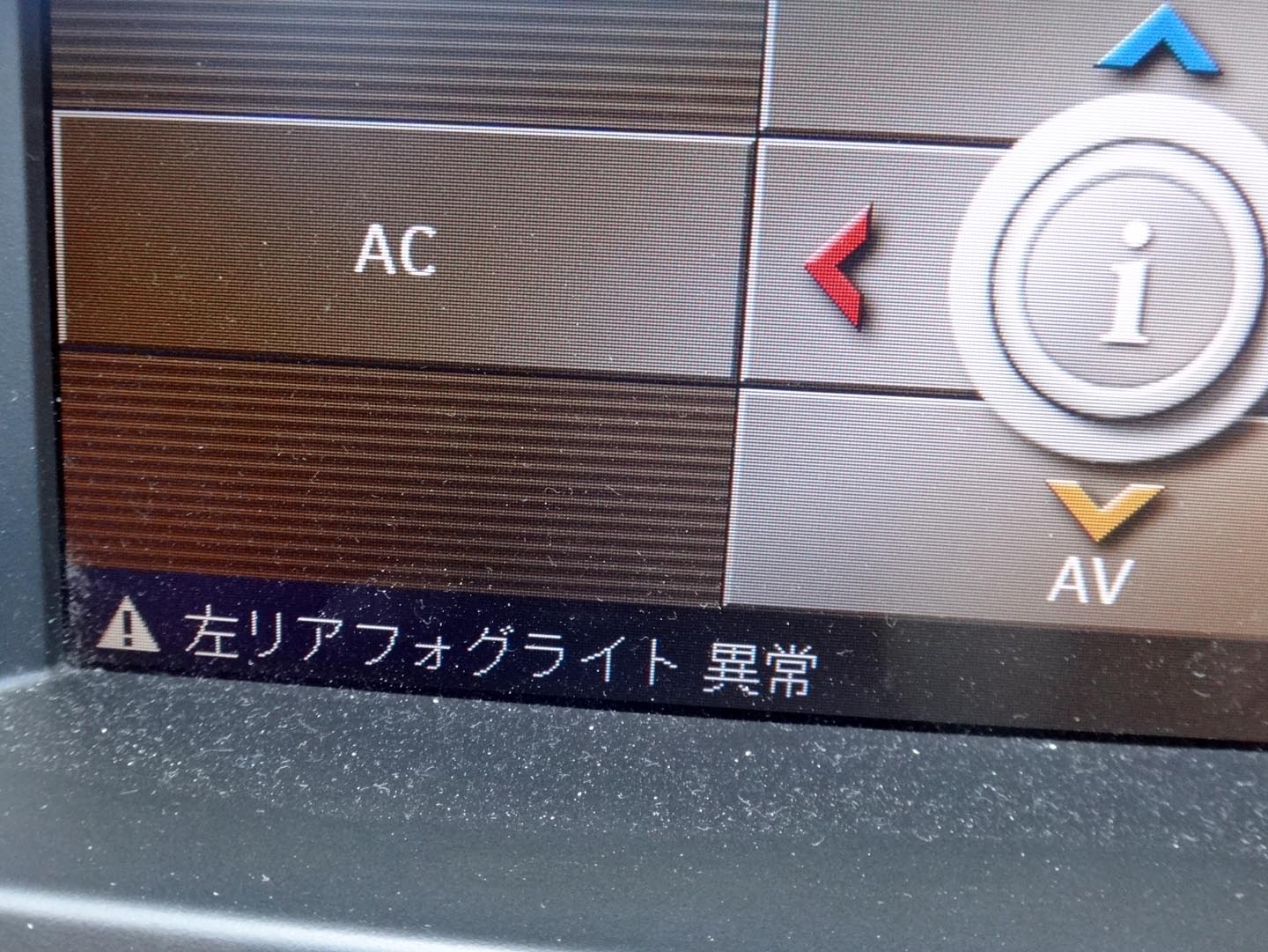 ある日突然、警告音と共にセンターディスプレイに出た「左リアフォグライト異常」の警告。