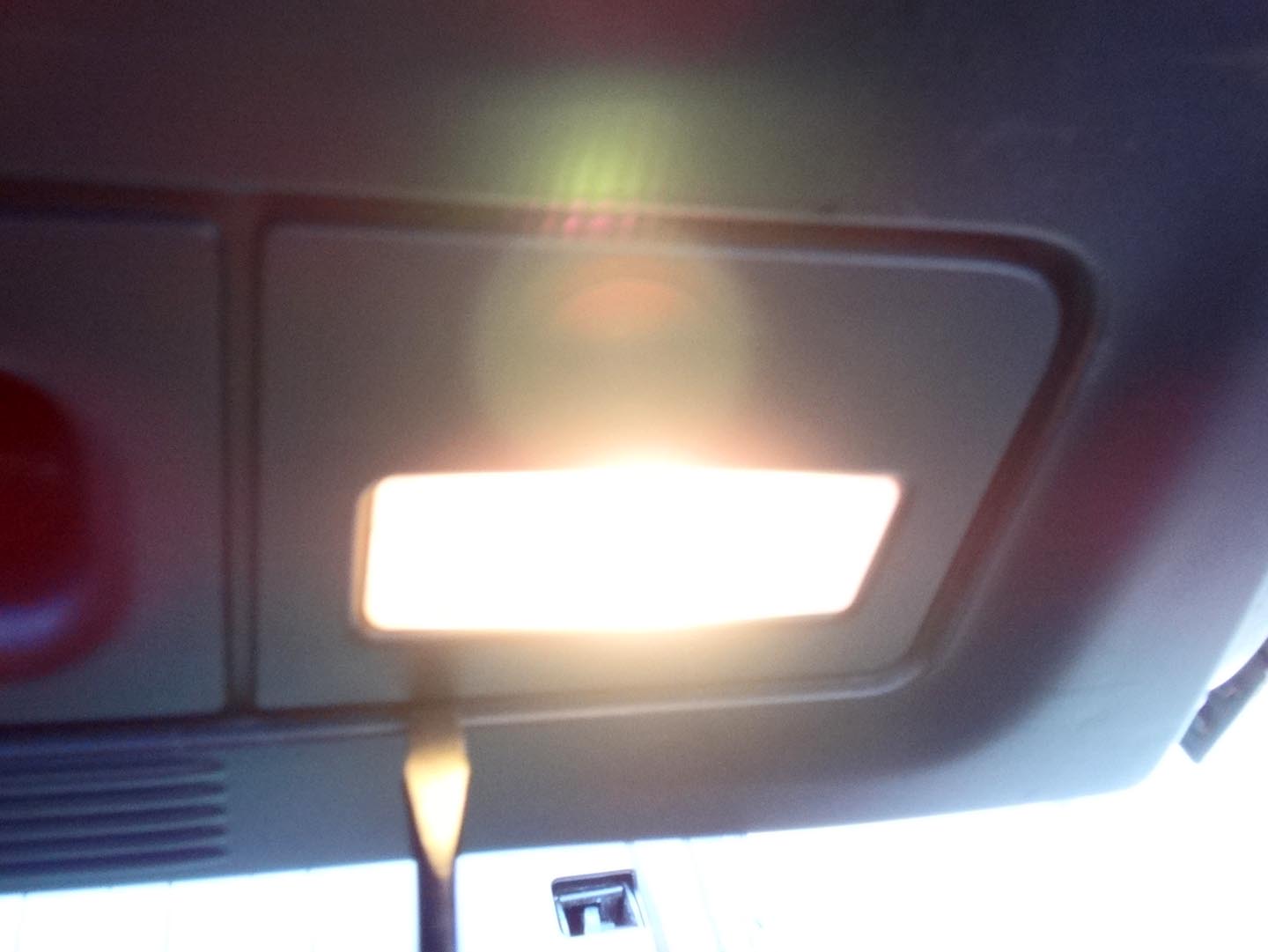 結論から言うと、リアのコンビランプ部へのアクセスは、バックドアの内側、室内灯部分を開けることから始まるとのこと。そこをマイナスドライバーでそっとあけると、リアのコンビランプ裏側に手が届きました。ただし、バックドアの室内側の作業なので、バッテリーを切断しない限り、室内灯がつきっきりでした。