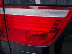 ここがリアフォグランプがある場所。そもそもリアフォグなんて、日本で使用してもむしろ後続車に迷惑をかけるだけなので、自分は絶対に使わないのですが、でも切れているとなると、毎回毎回警告音が鳴り、警告が画面を占領するのは困ったものです。切れているならば早速交換を、と思ったのですが、このランプバルブへのアクセス方法が分からないのです。どこにもはずせそうなネジが見当たりません。仕方なく「X5 リアフォグ 修理」とGoogle先生で検索しても、全然ヒットしません。それらしいブログなども見つかりません。皆さん、きっとディーラーに行って修理をされているのかもしれませんが、それでは困ります。「どうしよう・・・」と思ったとき・・・。