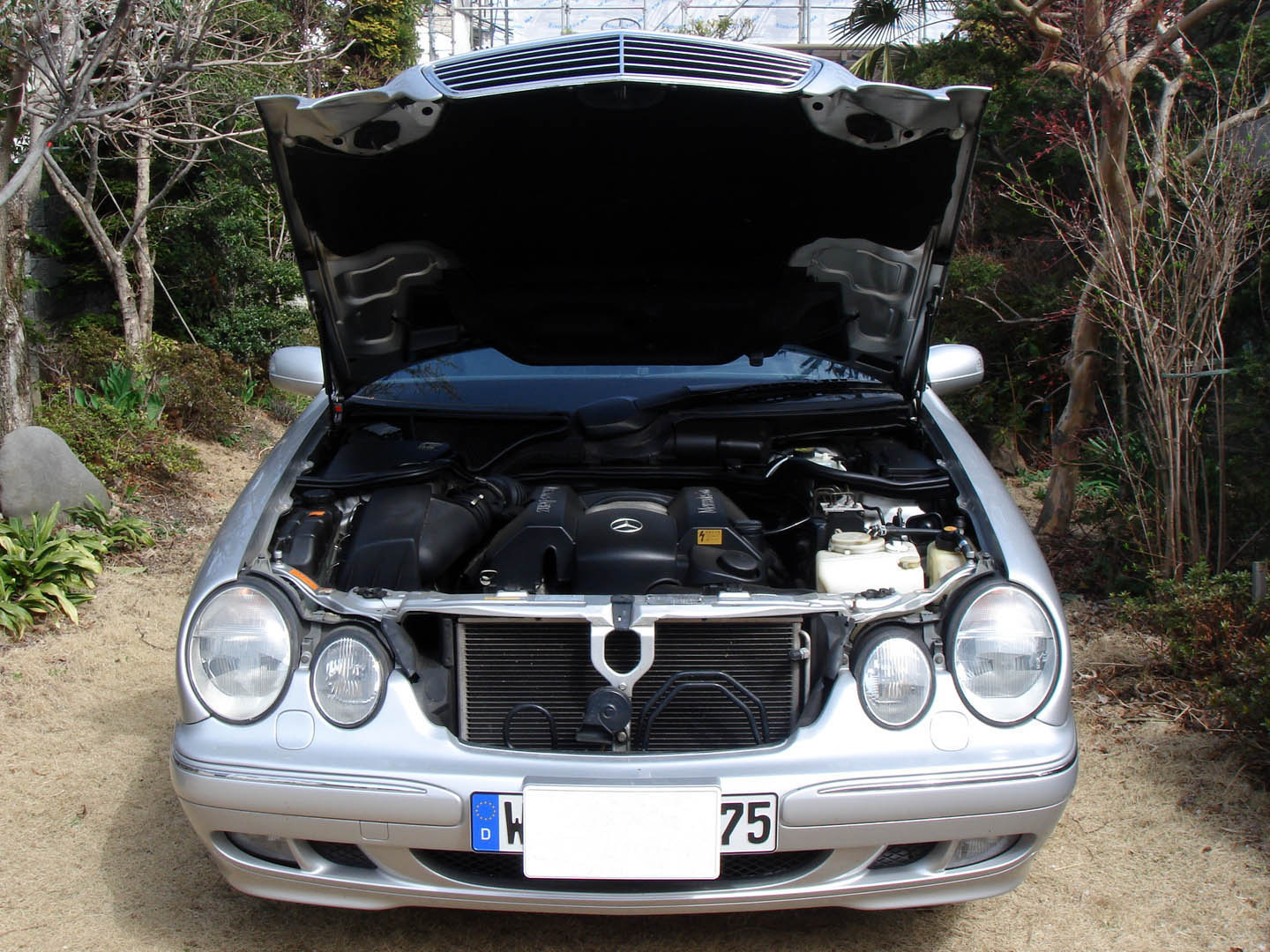 正面から。W210型の後期型です。前期にくらべ、V型エンジン用にボンネットを低くするなど大きな改良を加えていて、印象が変化しました。