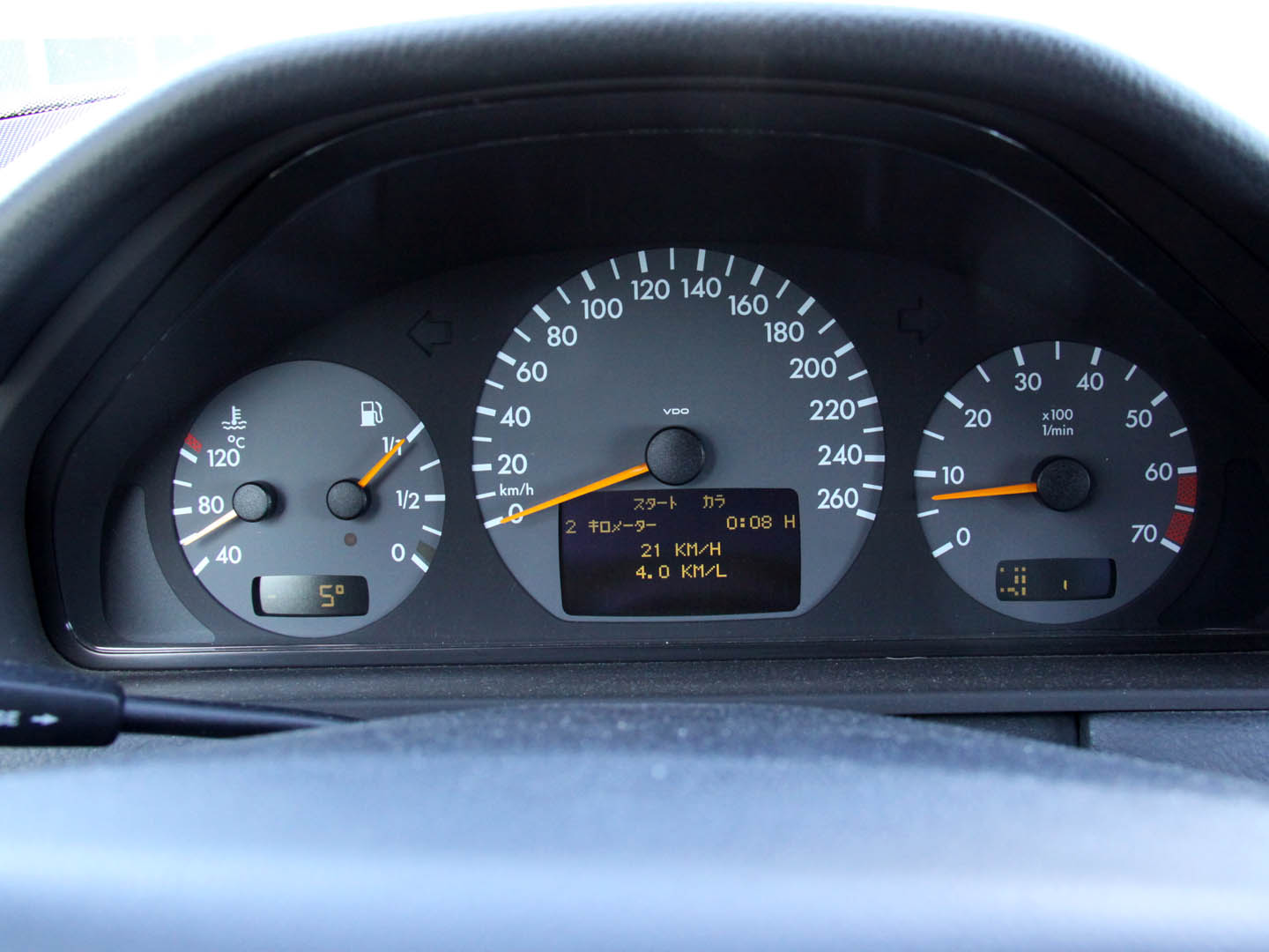 いろいろマイナス評価もあるW210系ですが、実際に走ると「快適」の一言です。特に高速道路の長距離移動などはものすごく楽。どんな速度域でも高速でも安定した走りと直進性で文句なしの走行性能。適度な硬さで自在に動くシートの作りもよく、個人的にはレクサス・クラウン系よりも快適に感じます。