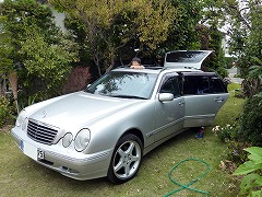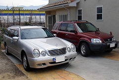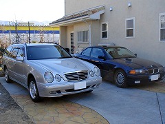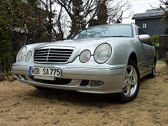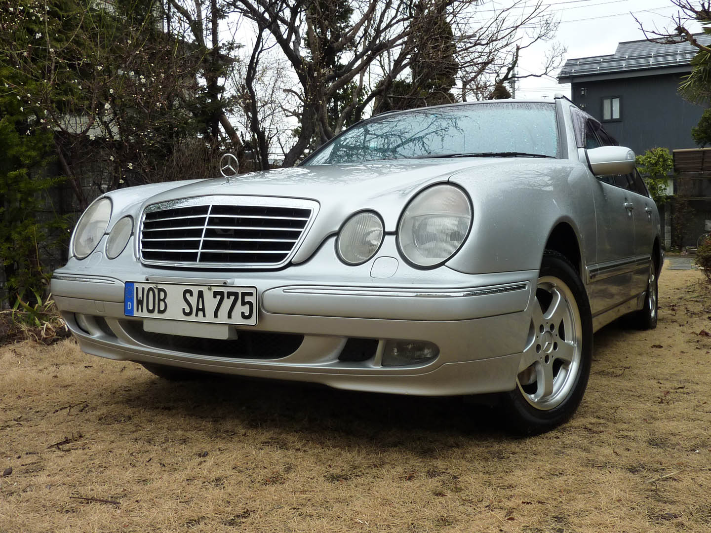 E320のステーションワゴン。W210系と呼ばれるEクラスです。先代EクラスW124に比べ、内容もデザインも良い意味でも悪い意味でも一新されたモデルです。安全装備や電子機器を増加したプラス面もありますが、ハンドリングや品質は明らかに先代の方が上、という人も多く、評価が分かれています。確かにW124に比べれば「・・・言いたいことは分かる。走りもハンドリングも『古き良き欧州車』という感じが無くなって、(悪く言えば)『大きな日本車』というような走りだもんな」という印象を持ちます。ただし条件にあったモデルはこれしかなく、良い選択だったなと考えています。「長距離を快適で高速で移動する手段としての車」とすればとても良い車だと思います。