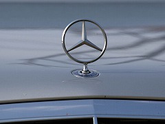 「陸・海・空を制する」というメルセデスのエンブレム、スリーポインテッドスター。ボンネット上のこのマスコットは衝突時歩行者に危害がいかないように自由に動くようになっており、全方向に簡単に動きます。自動で元に戻らないので、変な位置のまま走っていることも良くあります。