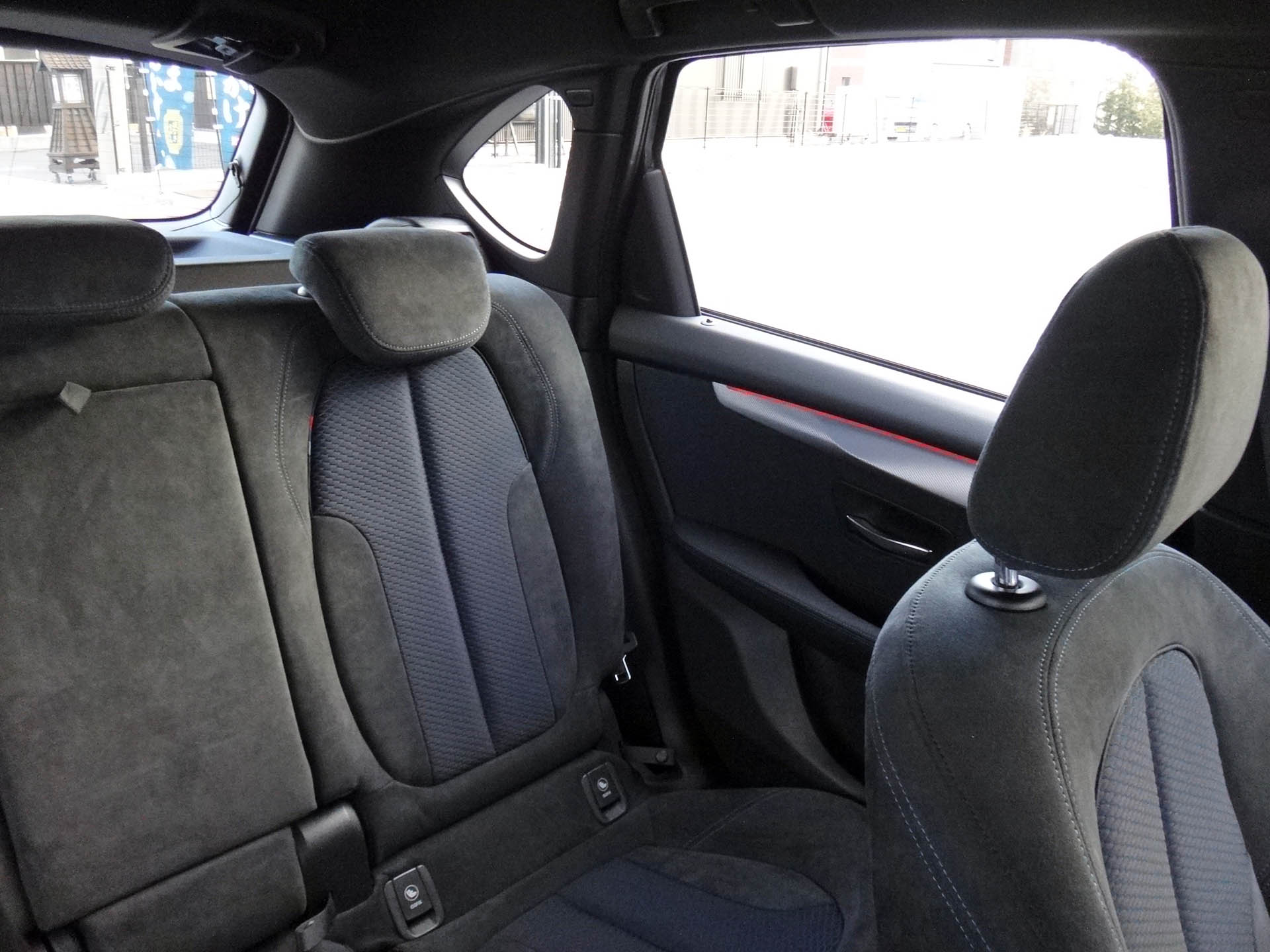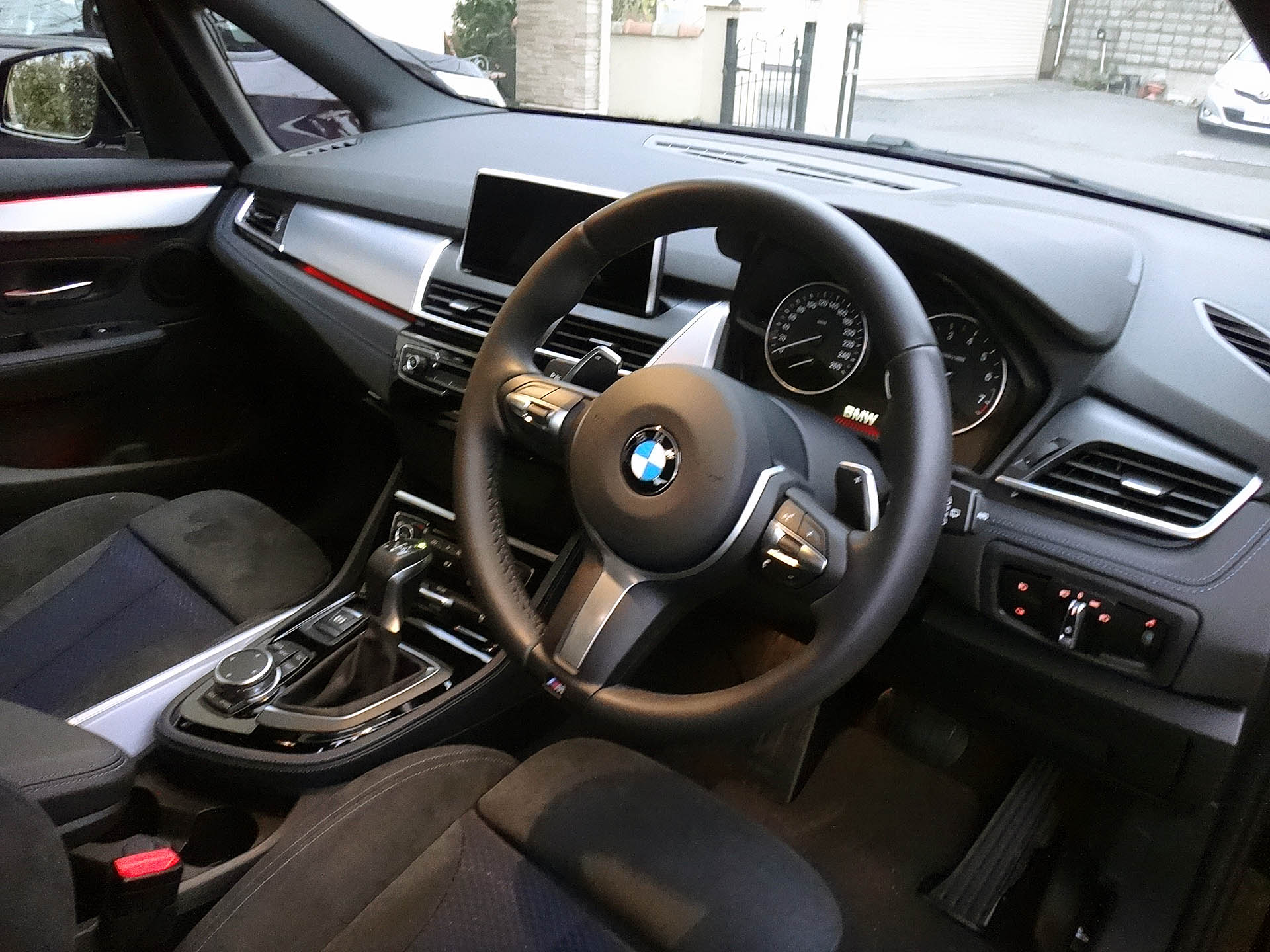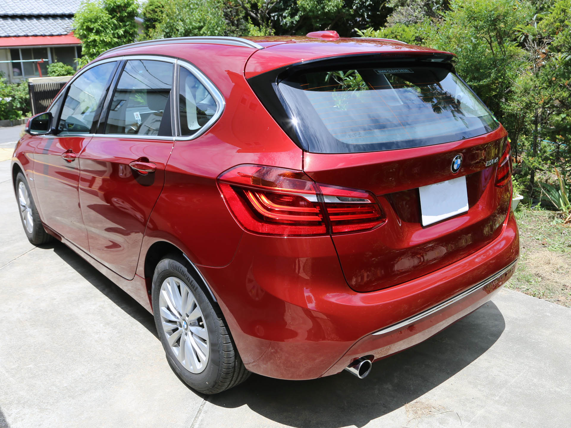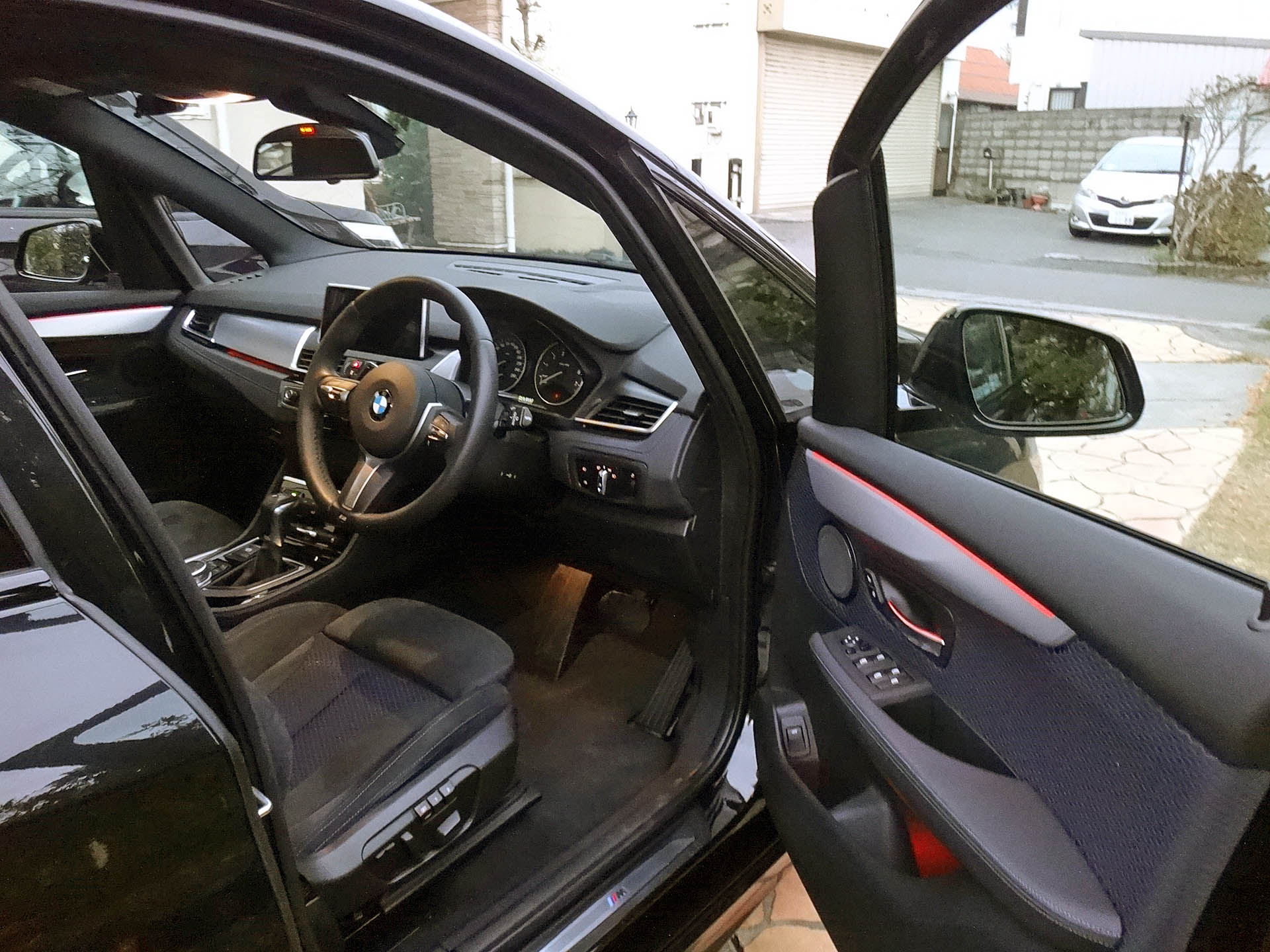 エクステリアは、ファミリーカー用途にしてはBMWっぽくまとめた印象です。居室空間を最優先にしなくてはならない中で全体のバランスを保っている、という印象です。近くで見ると良い感じなのですが、自分が唯一感じる違和感は、対向車として遠くから走ってくる2シリーズを見た時、一見、「あっ、いつものキドニーグリル(BMW)だ」と思って視線で追うのですが、キドニーグリル車にしては、ボンネットの傾斜角が急すぎてそこだけ妙な圧縮感という違和感を感じます。まぁ、いつものデザインに慣れ過ぎて、キドニーグリルからロングノーズのデザインばかりをイメージしているだけなので、慣れれば大したことないのですが。
