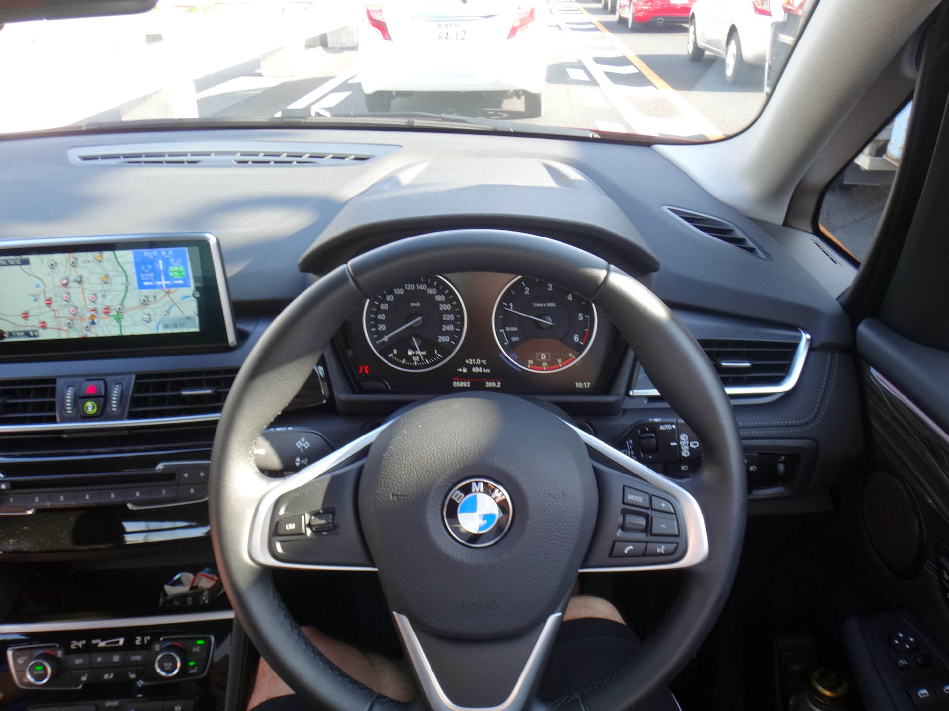 室内に収まると、現代のBMWらしい機能美のインパネ回りがカッコイイです。エンジンをかけると、これまた静かで、なんだかいつもBMWらしくない大人しさを感じます。走りだしてみると、これがまた、良い意味で想像と違います。きびきびと、しかも安定してよく進む直進性。カーブを曲がるときも、心持ちアンダーステアを感じますが、全く違和感なし。国産の同クラスのFF車に比べても、非常に制度の良いステアリングです。エンジンも静かに良く回り、ここぞと踏み込むと、それなりの力強い加速を見せてくれます。ちなみに自分は218id(直4 2Lディーゼルターボ)と225i X-Drive(直4 2Lガソリンターボ)の両方を乗り比べてみましたが、当然ディーゼルの方が加速がゆっくりだけどトルクフル、などはありましたが、それぞれ非常に洗練され使いやすい域に設定されている印象がありました。