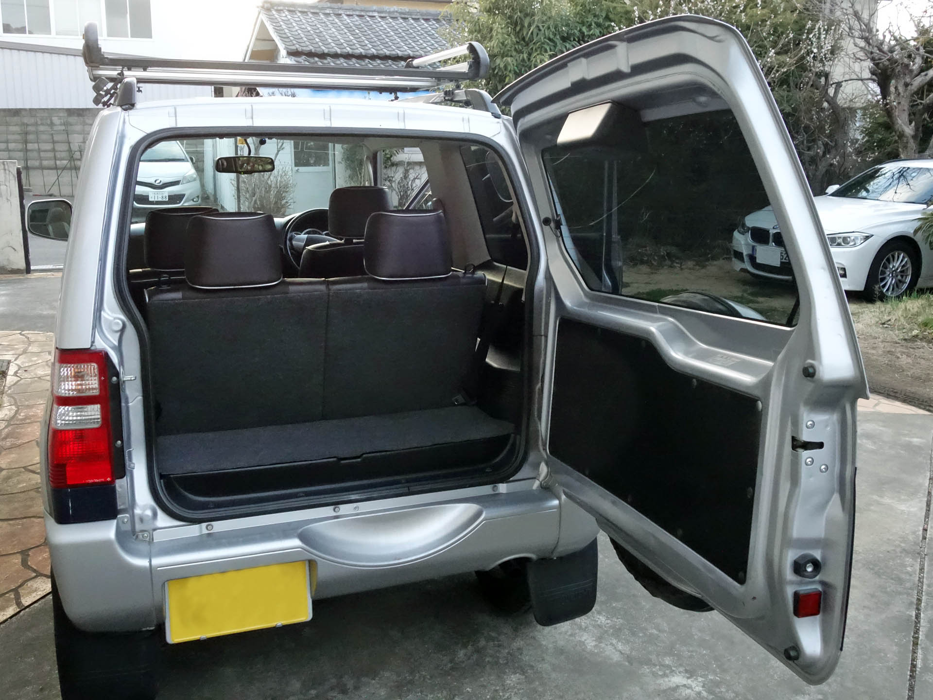 乗用車登録ですが、3ドアという、ジムニーと同じスタイル。当然、リアリートは非常に狭く、こども専用か、緊急用。2人乗り+アルファという感じです。