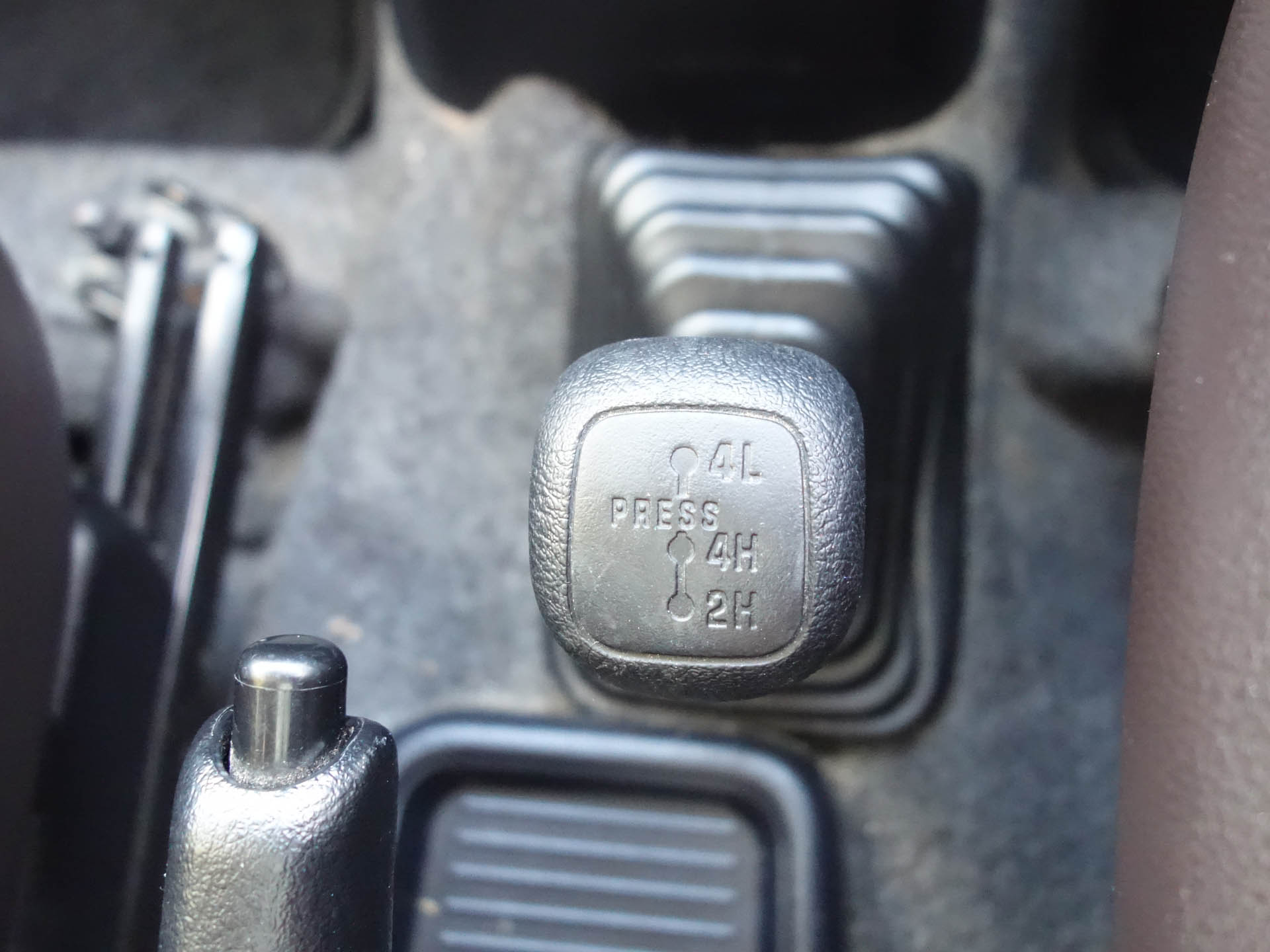 一応、本格4WDを標榜していましたので、2駆と、4駆高速-4駆低速を選択する副変速機がついています。ただし市場では、「ジムニーの悪路走破性に比べ、パジェロミニのそれは、かなり落ちる。非常に繊細な4WD機構である」という評判があるそうです。自分のように「ちょっとだけでいいから4駆の性格が欲しい」という人間にはこれで十分ですが。