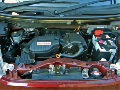 最大トルク: 65 N·m (6.6 kgf·m)/4,700 rpm。・・・おお、DOHC、しかも可変バルブタイミングリフト付き。CVTはこのために新開発の小型軽量なもの、VSA(横滑り防止装置)までついているとなれば、ある程度、高価になるのも分かります。